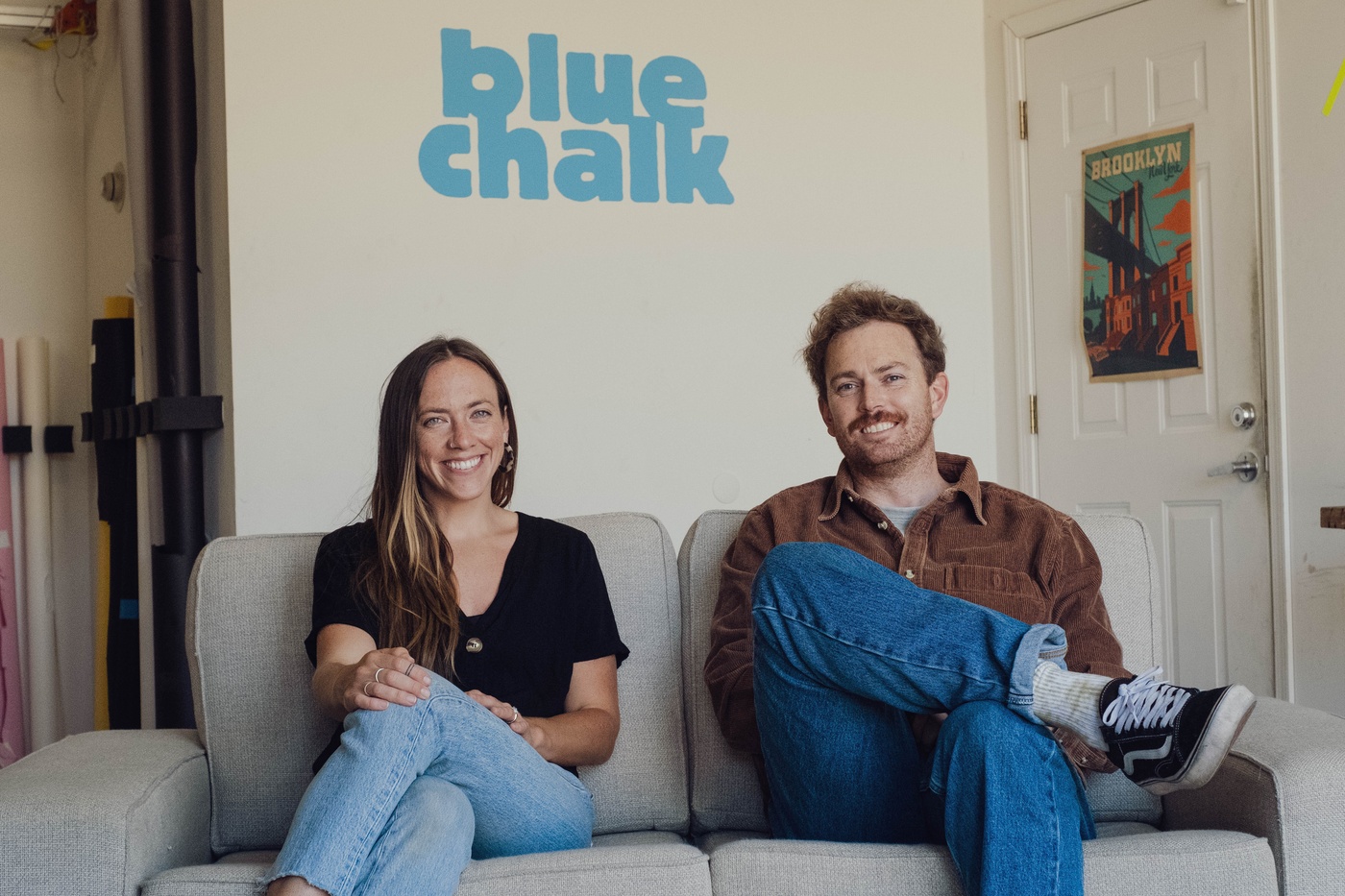 Photo: Co-Creative Directors Kenzie Bruce and Jesse Crowell pictured in the Blue Chalk Media office in Portland, Oregon. By Kennedy Smith.